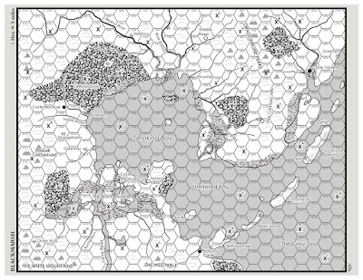 Y poco más. El resto es como toda la vida. Magia vanciana, romper puertas, tiradas de reacción y moral, tablas de encuentros y mapas de hexágonos.